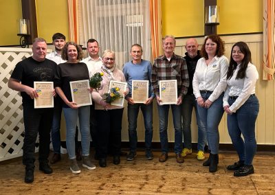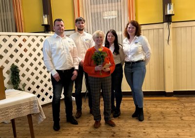 Ein besonderer Programmpunkt waren die Ehrungen. Im Mittelpunkt stand Erika Hartwig, die nach 38 Jahren ihr Amt als Sozialwartin abgab. Seit 1988 hatte sie sich um Geburtstage, Jubiläen und persönliche Anlässe gekümmert und war über viele Jahre hinweg beliebte Ansprechpartnerin für die Mitglieder.