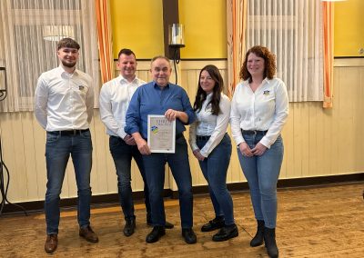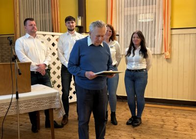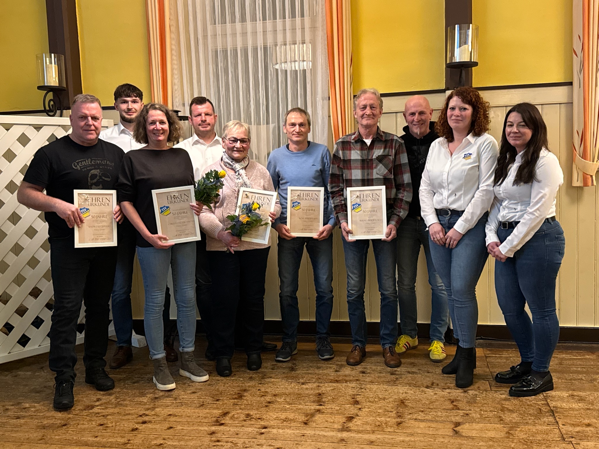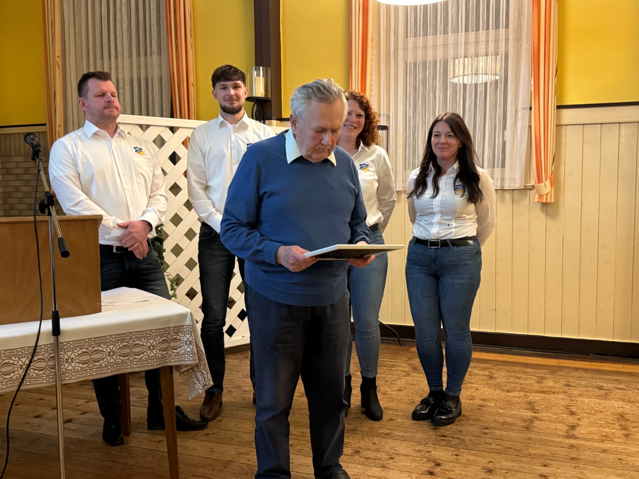 Ebenfalls hervorzuheben war die Ehrung vom ehemaligen Vorsitzenden Ernst Nüsse für seine 70-jährige Vereinszugehörigkeit. Mit dieser Auszeichnung würdigte der Verein seine langjährige Verbundenheit und Unterstützung. Der Verein ehrte an diesem Abend weitere zwölf Mitglieder für ihre langjährige Vereinszugehörigkeit.
